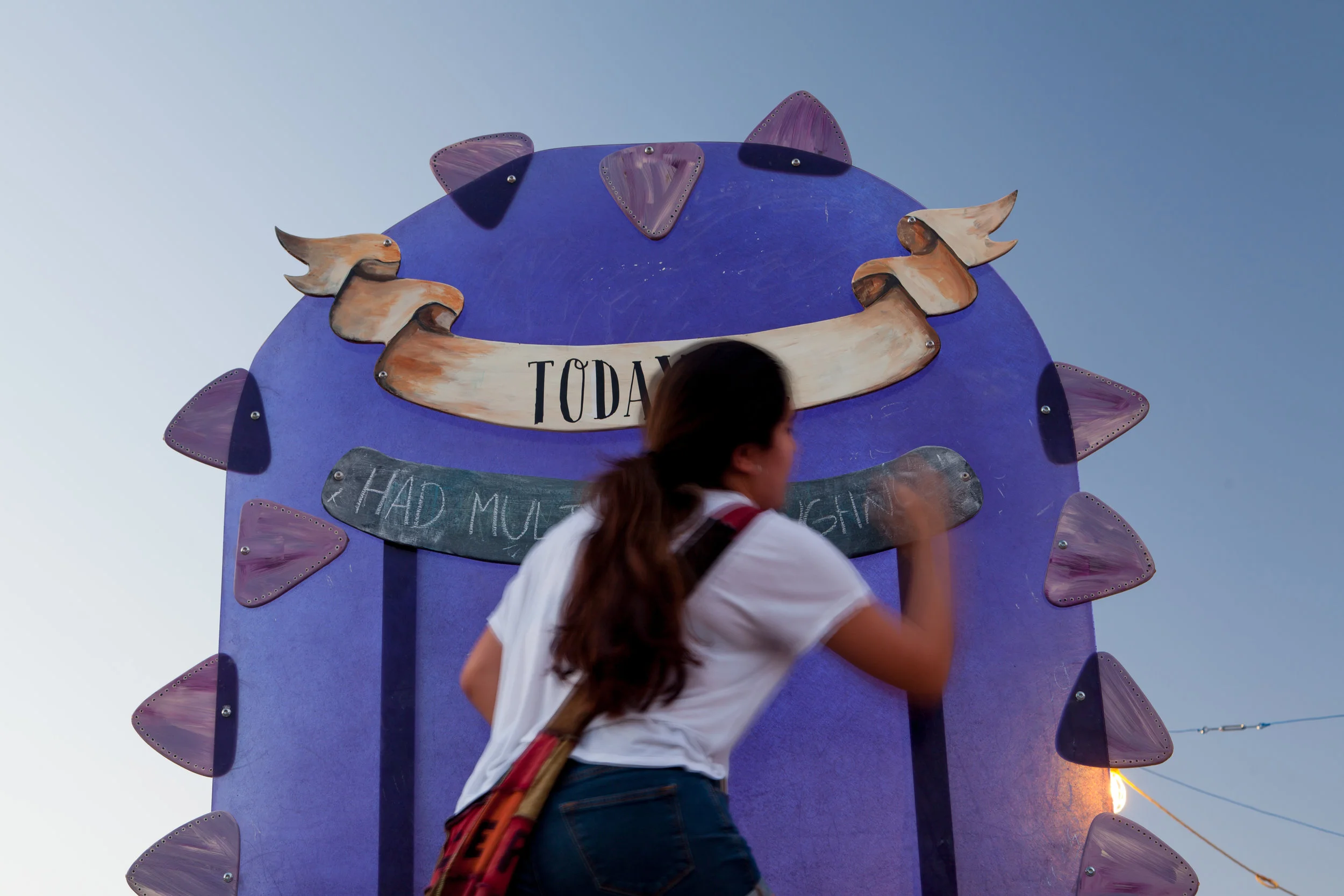 Got up early to walk the dog? Done. Went to work even though you really didn’t want to? Check. Hurwitz created a place where we can all celebrate the small stuff too. Get up on the awards stand and let us know what you accomplished today! Congrats! An accompanying projection also awards viewers with trophies and ribbons for other small accomplishments such as calling your grandma, and eating your veggies.