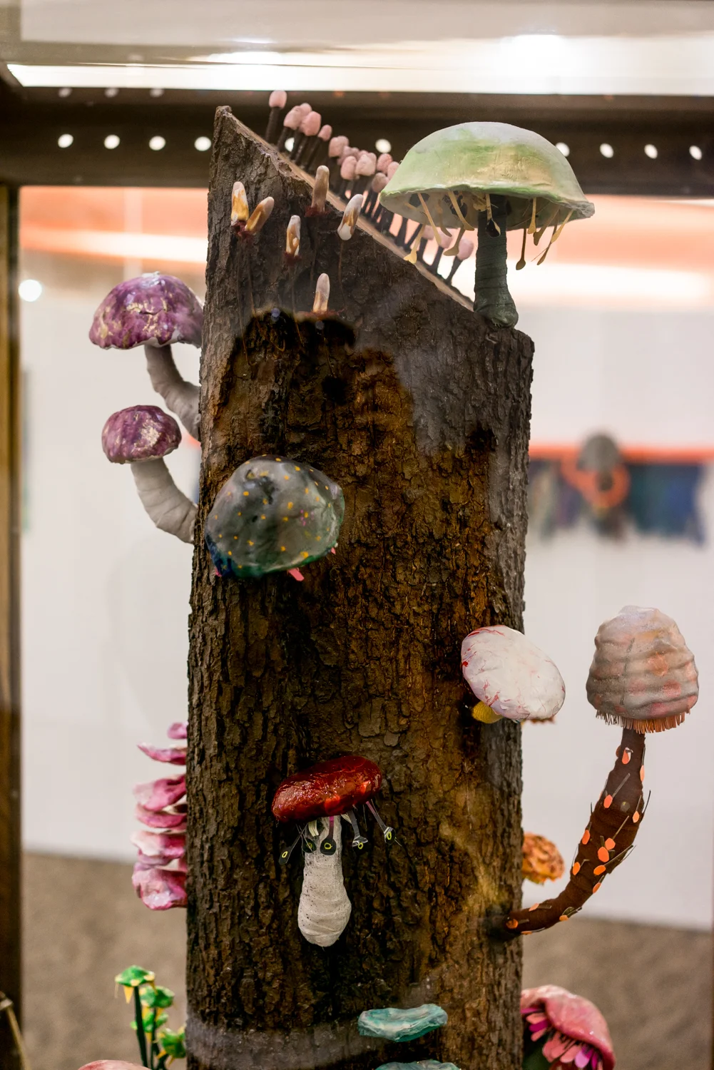 Sarah Hurwitz’s imaginative environment, a half-magical cave of mystery, half-Earth science diorama floats in the upper spaces of TheGallery@theLibrary.