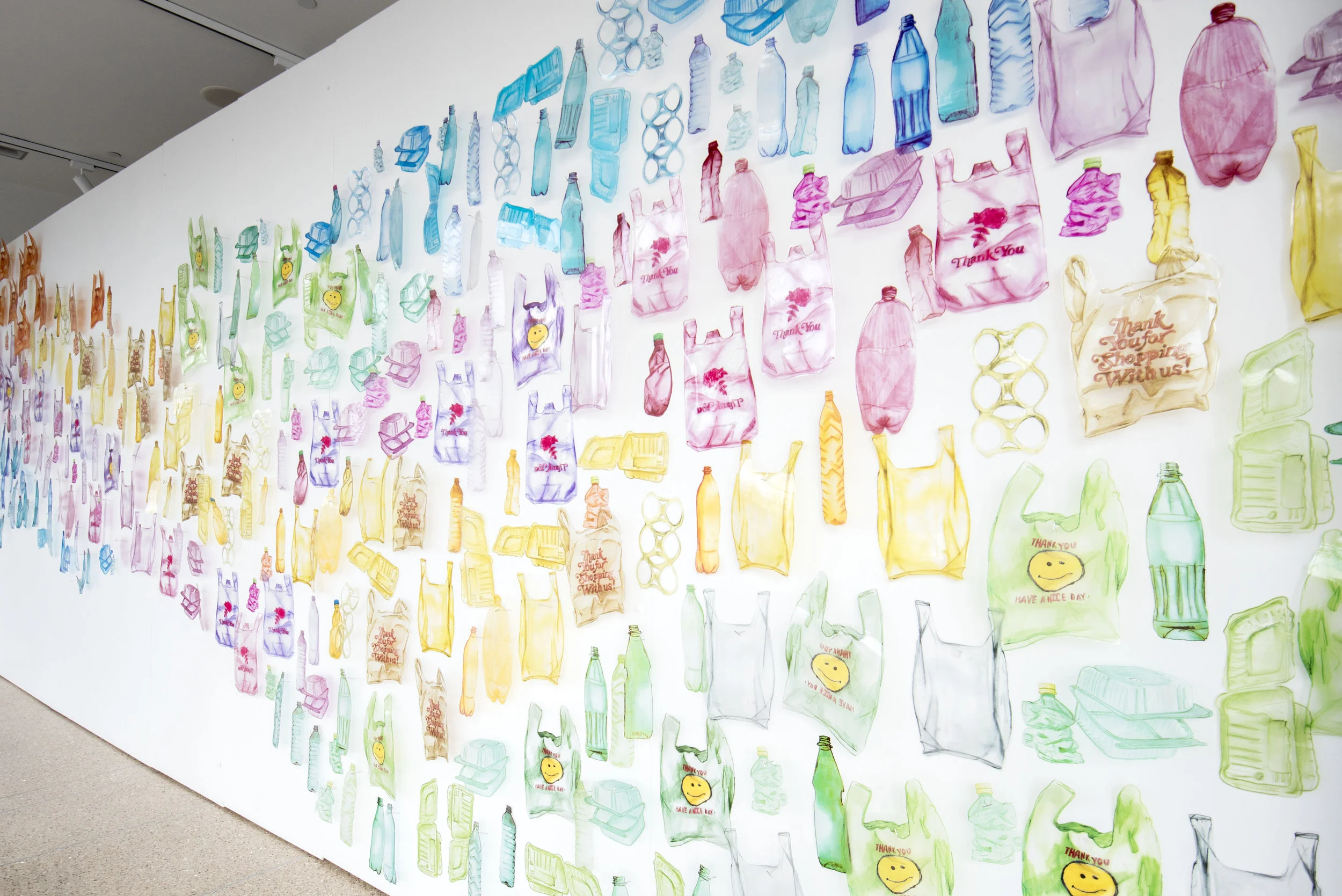 Using recycled material as part of 11 Miles of Color Exhibition at Gallery @ The Library, Scottsdale Civic Center.